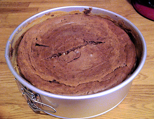 It is ready to place in the oven for approx. 1.5 hour it may be a little less depending on your oven temp. When it’s done, look for it to be not too firm but definitely not too jiggly. I can give you temperatures:(The ideal temperature for a cheesecake is around 160 to 165 degrees) but to tell you the truth I have never used that. The truth is that it is trial and error and each will be different until you find your favorite texture. But the 1hour 1/2 mark will ensure it’s done and I used this yesterday and it was perfect! I also place a large pan of water in the oven for a little extra moisture. When finished, turn off the oven, but allow it to remain sitting there for about 20min to cool down, then gently pull it out. Slide her right into the fridge and let it set overnight. NO LESS is advised. Trust me on this … if you listen to nothing else I have said, listen to this: let it set OVERNIGHT. OK! let’s see how it turned out!!