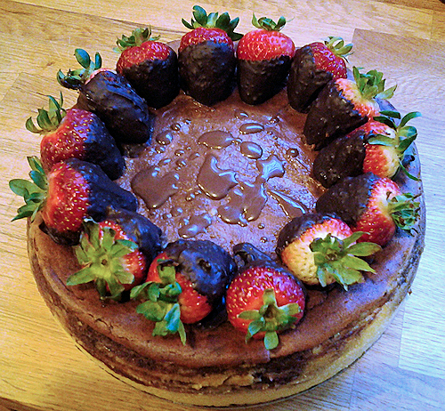 10-12 chocolate covered strawberries for decoration on top. Simply get some good melting chocolate you can get this in the grocery store in produce, melt as directed and dip cleaned dry strawberries then lie on wax paper to let harden for decorating.