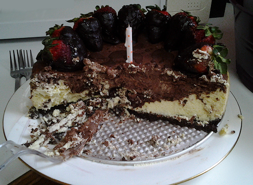 Black and White Cheesecake w/ Chocolate Covered Strawberries!