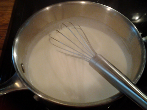 Now add your cream and milk and stir until nice and smooth.