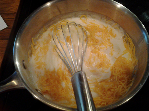 Add your cheese..try not to eat all the cheese before putting it in the mixture. OH! that’s not you, it’s me 🙂