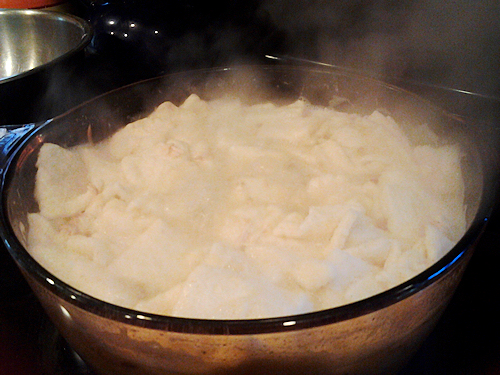 Stop staring at my squares, in fairness I warned you. Now let’s get these um squares in that boiling broth! Simply slide these babies up with a spatula and slide them into the boiling water. They should glide right off.