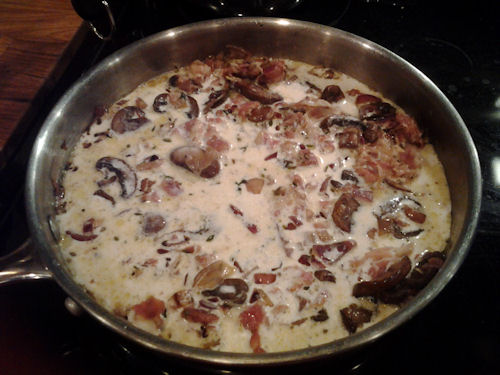 Tortellini Carbonnara with Mushrooms and Shallotts