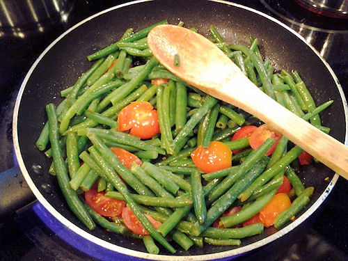 I literally added all of this ingredients into a sauté pan and let them do their thing while I cooked the fish it all came out perfect at about the same time! Drizzle that basil lime vinaigrette over the fish and I even drizzled some over these green beans it was wonderful!! I hope you enjoy!