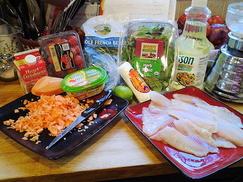 - SEE DRESSING AND INGREDIENTS BELOW FOR FISH AND SALAD