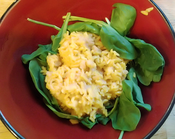 Right now that rice is cooking our spinach! Your fish should be done now!!