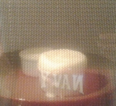 Then popped them into the microwave and let them steam. Remember I started with one minute increments. Now at this time if you DO NOT want to microwave get out a deep oven safe dish fill about half way with water and place the ramekins in the water bath. They ramekins should have water about half way up. You will bake this at 350 for about 40minutes.