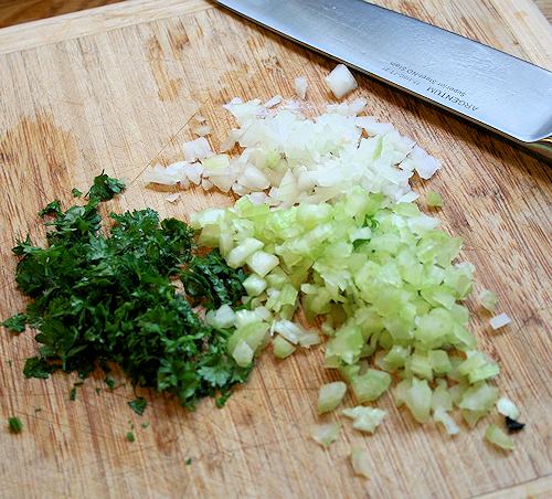 Chop the parsley, onion and celery. I know they are not huge amounts but trust me on this, the ratio is perfect.