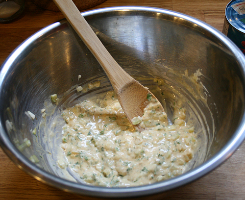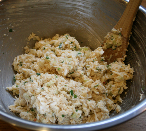 Stir completely but do not beat the ingredients together. You want that beautiful crab to stay intact.