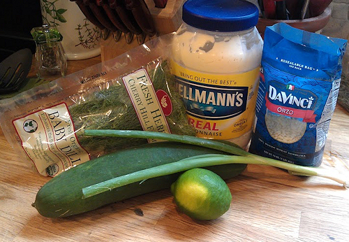 cucumber dill salad, light spring salad, Orzo, orzo dill salad, orzo salad, pasta, vegetarian pasta salad, vegetarian side
