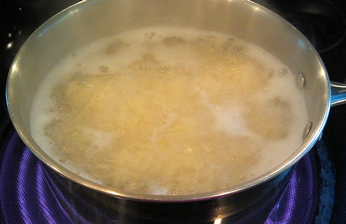 In a boiling pot of water according to package directions, add the orzo.