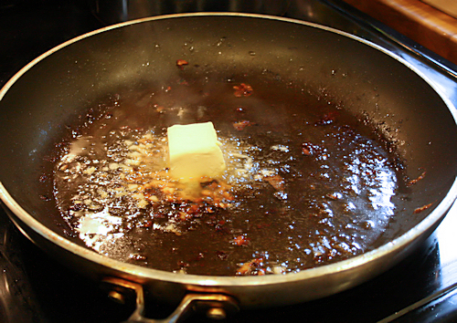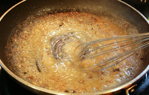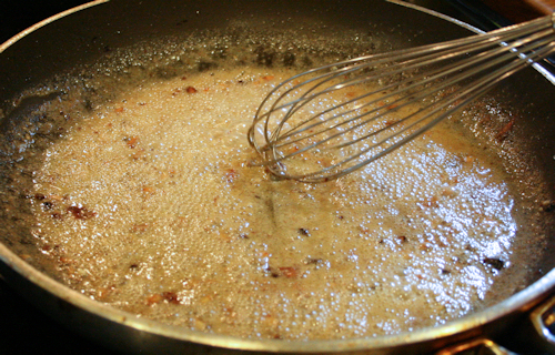 Just look at those yummy bits! When the butter melts, add your cornstarch and whisk it in together, making a loose rue.