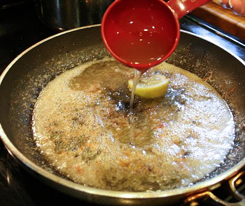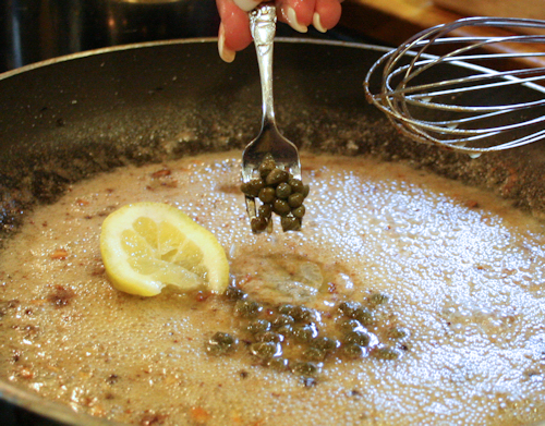 Add the capers and throw in a slice of lemon if you have any left over. I just liked the way it looked and thought I would use it for a garnish later.