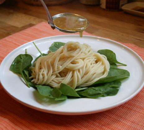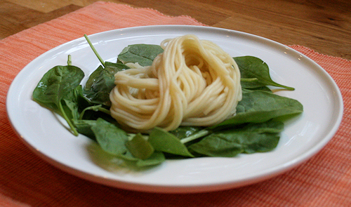 - cooked spaghetti noodles(I used left over angel hair I had available. Make what you need per person.)