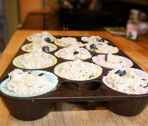 Spoon the batter into your muffin cups evenly. I like to make sure they are a little bit over filled. This ensures that nice top we all love muffins to have.
