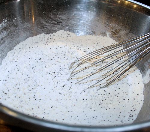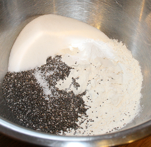 Whisk together the flour, baking powder, sugar, Nutiva chia seeds and salt.