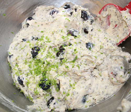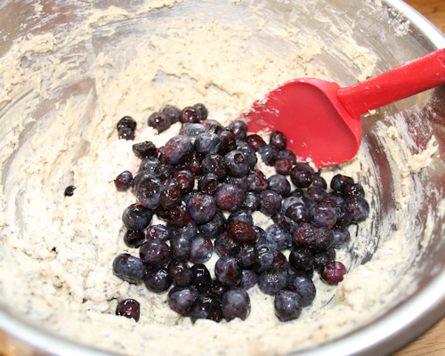 Fold in the blueberries and be sure not to mix too much as we don’t want them to break.