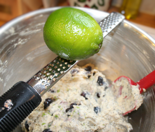 Lastly, add in your lime zest, grating right over the bowl and fold in.