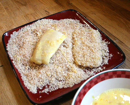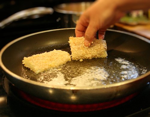 Then dip into the panko mixture, getting each side coated.