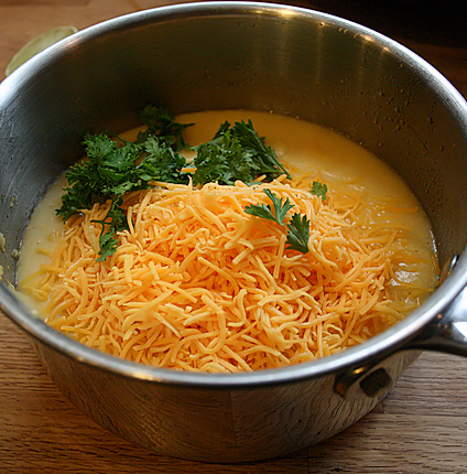 Add 1/2 cup of cheese and 1/4 cup of chopped parsley, a sprinkle of salt and pepper.