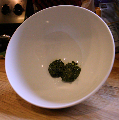Add the cilantro paste and then the sriracha sauce to a bowl.
