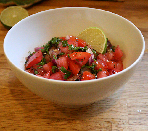 Squeeze half of a lime into the salsa and chill.