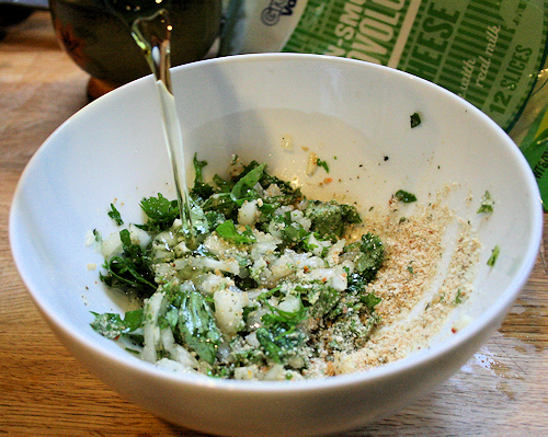 First thing is to get your garlic, parsley, onion and breadcrumbs.