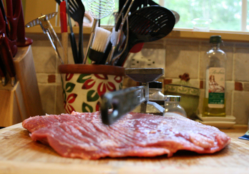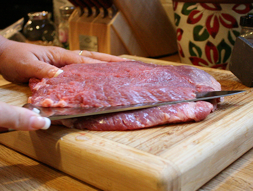 When this is done, you can use a mallet to pound it out really flat. I do this before and after the butterflying.