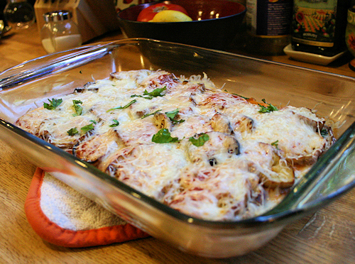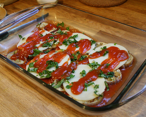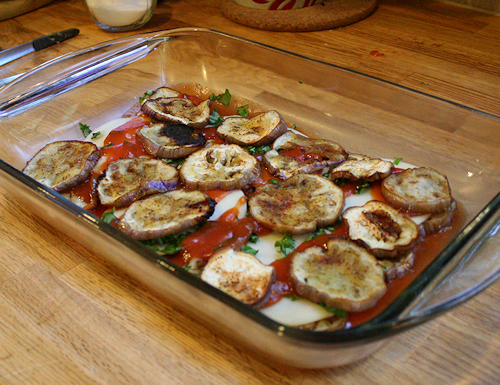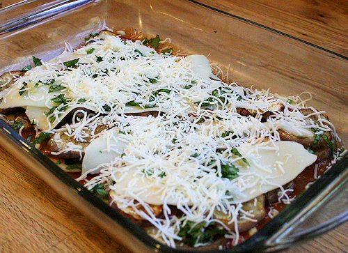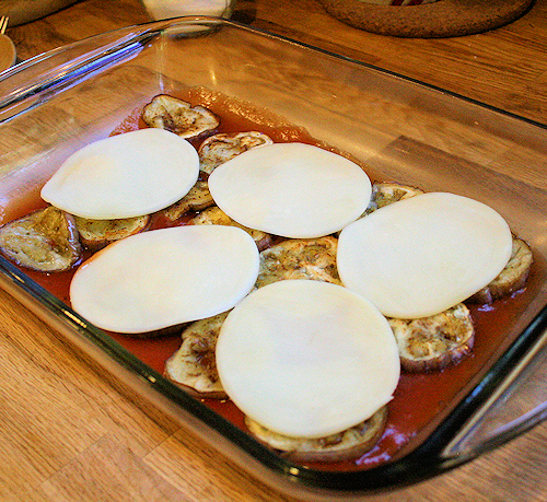 You do this until you run out of eggplant, making your last layer cheese.