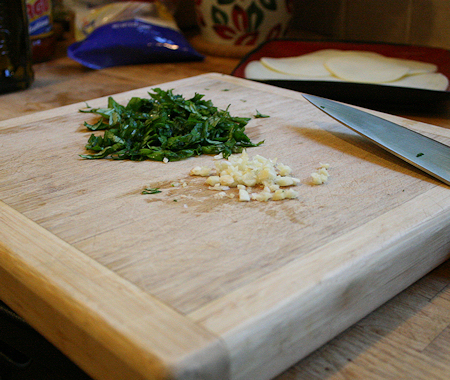 Dice your basil and garlic and add together in a small bowl.