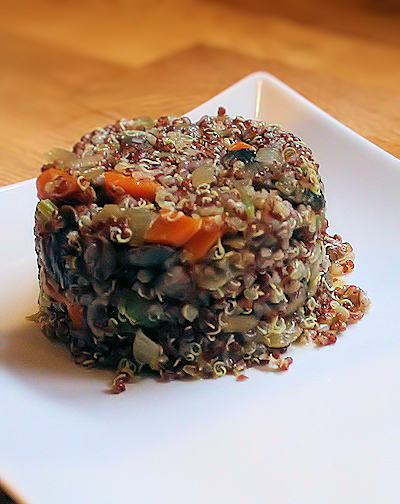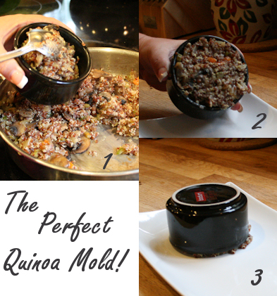 When done, spoon the quinoa into your ramekin or bowl and flip over onto serving dish. Why do we do this? Presentation, darling!
