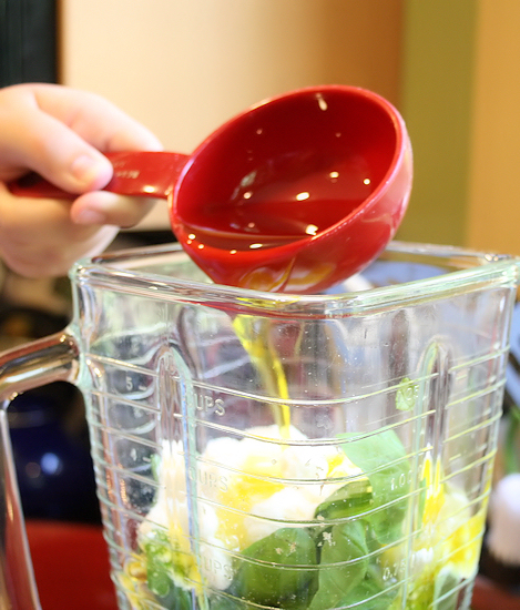 You are ready to blend! If after blending it seems to thick, you can add another 1/4 cup of extra virgin olive oil. I did have to do this but I wanted mine a little thinner to coat all the noodles.