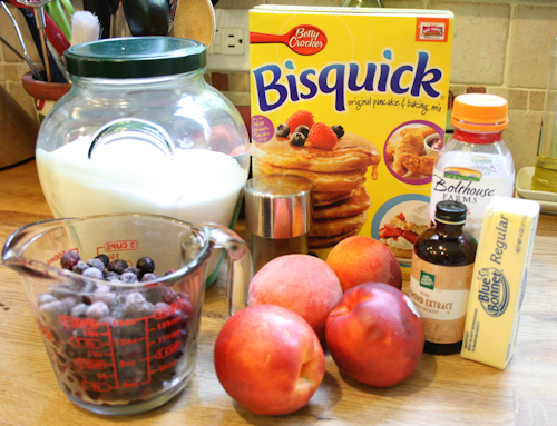 I had a hankering (is that a word?) for cobbler. But I didn’t just want any old cobbler. I wanted a mixed fruit, so I dug up my favorite recipe and looked at what fruit I had available. I came up with peaches and nectarines from the farmers market, fresh picked blueberries from a friends garden and pomegranate juice which I seem to be in love with right now.  On a hot day like today, we had to have some vanilla ice cream to go with it as well. Let’s just say someone else went out for that, I have a cobbler to make!