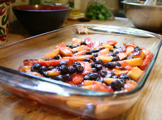 cob9Once the sugar has coated all of those wonderful fruits, add to your baking dish.