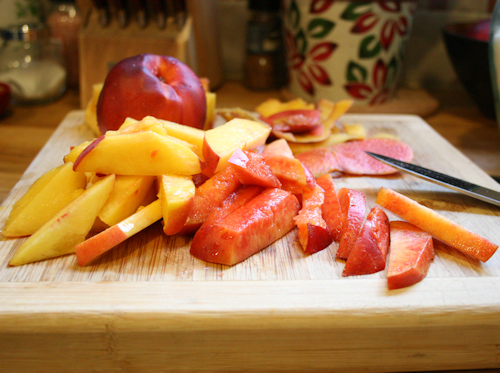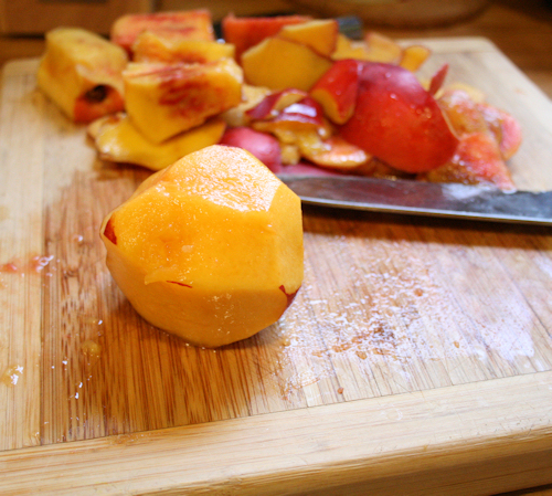 cob5cob6Set the batter aside and start prepping your fruit. Rinse your berries and take out any stray stems on the blueberries.  Those are not fun to chew on, even with ice cream! Slice your peaches and nectarines, removing most all of the skin. No need to get super picky.  We want rustic and fresh right?