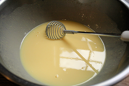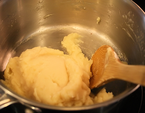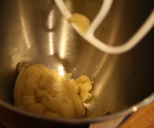When the ball is firm and not wet, take it off the heat and put directly into your mixing bowl.
