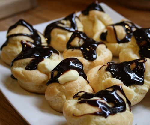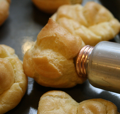 Take the puffs out of the oven and let them cool for at least 20 minutes. You do not want to put cold pudding into the hot puff or you will have a mess.
