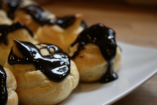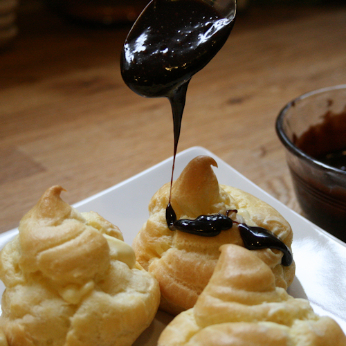 You must listen to me on this and use the whipped variety. The consistency is so much nicer. I promise, this is delicious. Wait a few minutes to let it cool and drizzle on each puff.