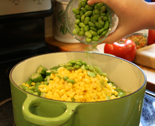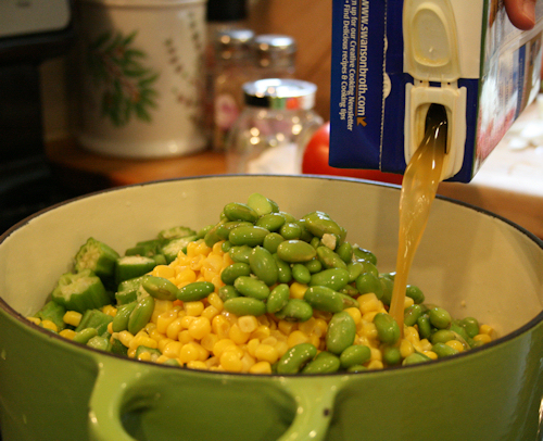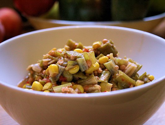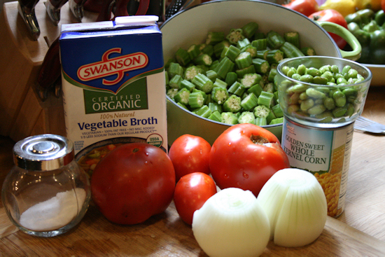 okra and tomatoes, okra succotash, succotash, vegetarian stew, vegetarian succotash, veggie stew