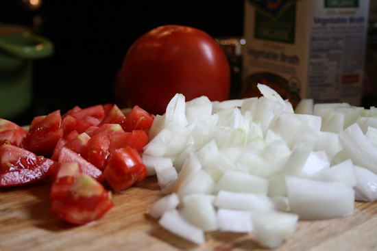 Onions and tomatoes. Have I mentioned how much it is raining here? The light in the kitchen lately is terrible!! The sky looks like it is dark all the time and I am told we have ten more days to go of this? Again, I am sorry about the pictures.
