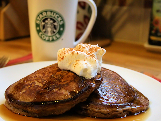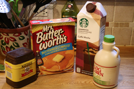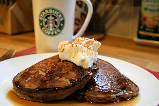 Oh yes, that is what I said. “Starbucks™ Mochaccino Pancakes!” and they were awesome. I had seen this new addition to the grocery store and just had to give it a go. I loved it! Not too sweet like the others, and I even threw it in the blender to make a delicious frappucino. But I knew deep down inside there had to be more I could do with this. Well, upon waking one morning it hit me before I even got out of bed, I was going to make Mocha pancakes! By the way, have I mentioned the nearest Starbucks™ is 40 minutes away? Yes, 40 minutes, so excuse me for the excitement I am showing with this and don’t bother telling me how Dunkin Donuts™ has better coffee yada, yada, blah-blah because there is not one of those here either. So back to my pancakes!