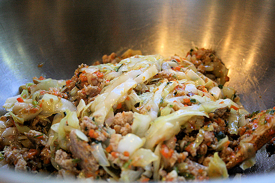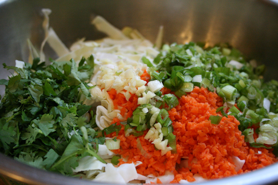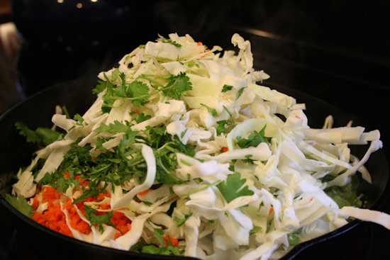 Transfer to a wide bowl and let cool completely. I did this by putting the whole bowl right into the fridge for about 30 minutes. * The eggrolls are definitely something I would do ahead of time if you are doing anything else with your dinner.