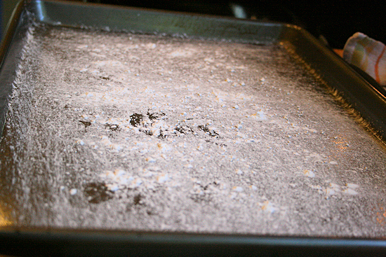 When the filling cools you are ready assemble your eggrolls. Take a baking sheet, dust it a little with the corn starch so that the wrapped eggrolls don’t stick to the pan as this is where they will be placed when they are wrapped. Preheat the oven to 400 degrees f at this time.