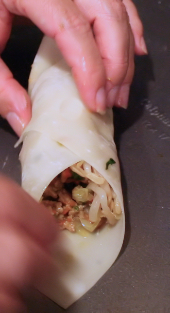 Now I did mine a little wide, hey it was my first time but I expect to get better with every roll because these were amazing. My family loved the idea that these were made here and I lightened them up. they were not as heavy as the ones in the restaurant and had just as much if not more flavor and way more filling.