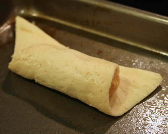 Roll the crescent roll making sure the ends close so the filling doesn’t seep out.