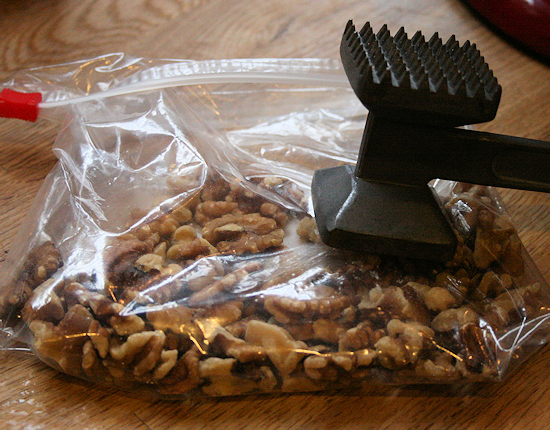 If your walnuts aren’t already crushed, here is a simple method for crushing them.