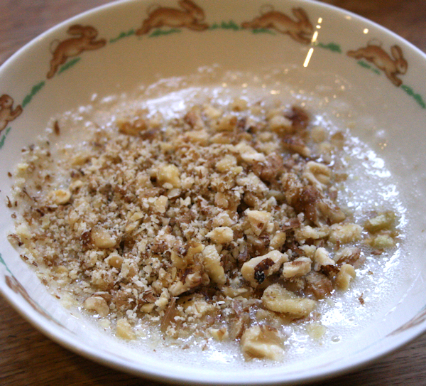 - 1/2 cup of crushed walnuts