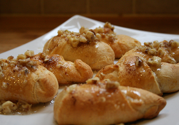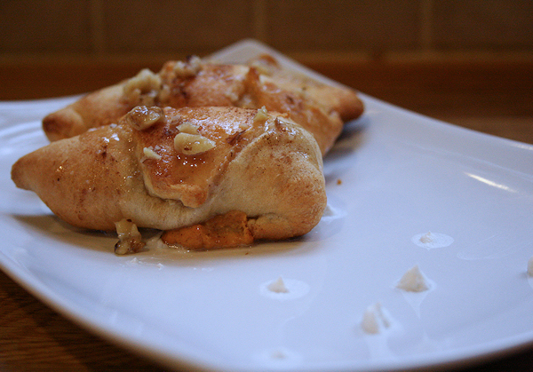 Spoon your decadent walnut maple drizzle generously over each pumpkin crescent.