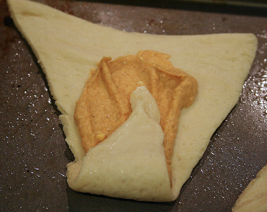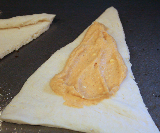 Spread about 1 heaping teaspoon into each triangle.