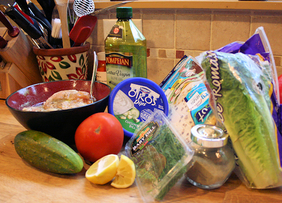 - 1 container of the Oikos cucumber dill dip